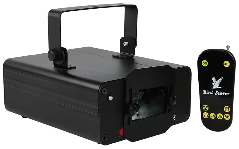 Лазерный отпугиватель птиц "Лазер-П" устанавливается в помещениях и эффективно прогоняет любых пернатых вредителей с территории складов, ангаров, зернохранилищ и др. объектов большой площади. В комплекте удобный пульт ДУ.